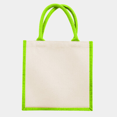 Laminated jute/cotton canvas. Cotton carry handles (40cm long). Print-friendly canvas side panels. Capacity 14 litres.