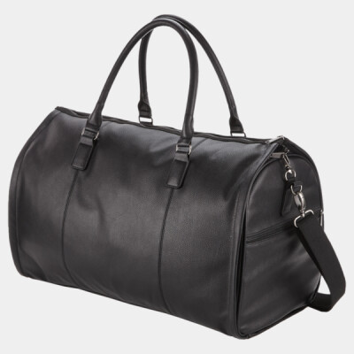 Full grain leather look NuHide® PU. Pinstripe lining. Self fabric carry/shoulder handles. Full body garment bag section. Internal shoe pocket. Fully opening main zip compartment. Secure interlocking zip closure. External zip stash pocket. Tear out label. Capacity 37 litres.