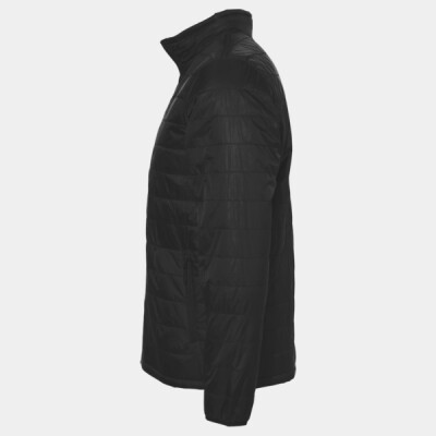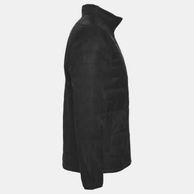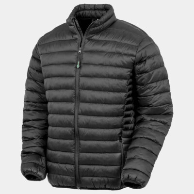 100% recycled nylon. Recycled polyester padding. Recycled nylon lining. Showerproof, windproof and breathable. Hanging loop. Heavy duty full length zip with chin guard and inner zip guard. Inner pockets. Two front zip pockets. Black bound elasticated cuffs and hem. Tag free. Access for decoration.